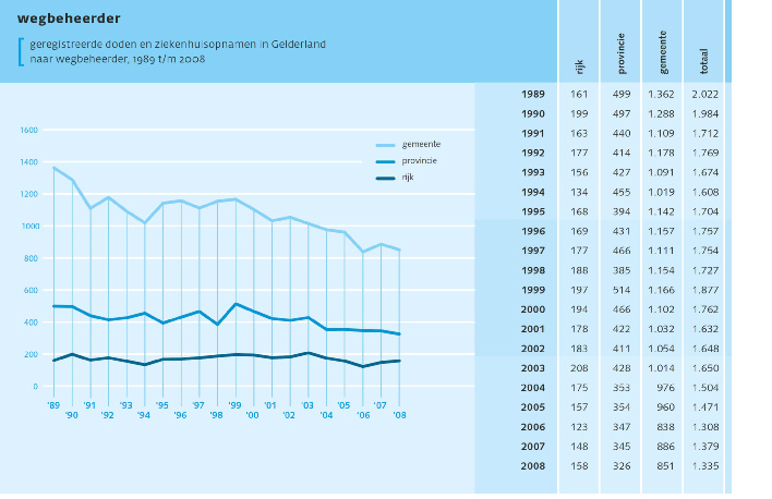 Uit het gepubliceerde cijfers van ROVG “De Gelderse Verkeersonveiligheid 2008” blijkt dat op de gemeentelijke wegen de meeste slachtoffers vallen!