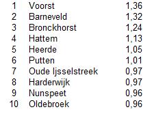 Uit hetzelfde onderzoek van ROVG blijkt dat verder dat Gemeente Barneveld in de top10