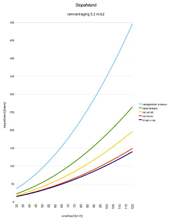 Klik op de excelsheet rechts en je download te berekening en tabel van stopafstand.