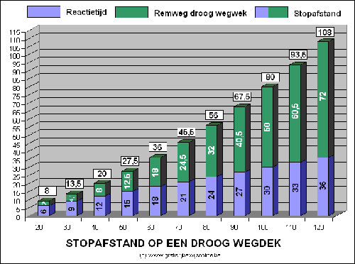 Over het algemeen zijn mensen zich in onvoldoende mate bewust van het effect van snelheid op de reactieweg en de remweg.