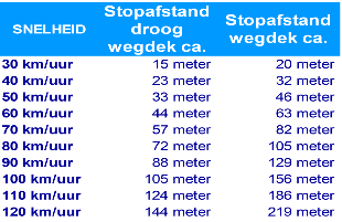 Klik op de excelsheet rechts en je download te berekening en tabel van stopafstand.