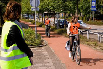 Onderweg zijn er zes controleposten, vertelt coördinator Joke van Middendorp. ,,De leerlingen krijgen onder meer te maken met een rotonde met en één zonder voorrang, verkeerslichten, een vrijliggend fietspad en een fietspad langs de weg.''